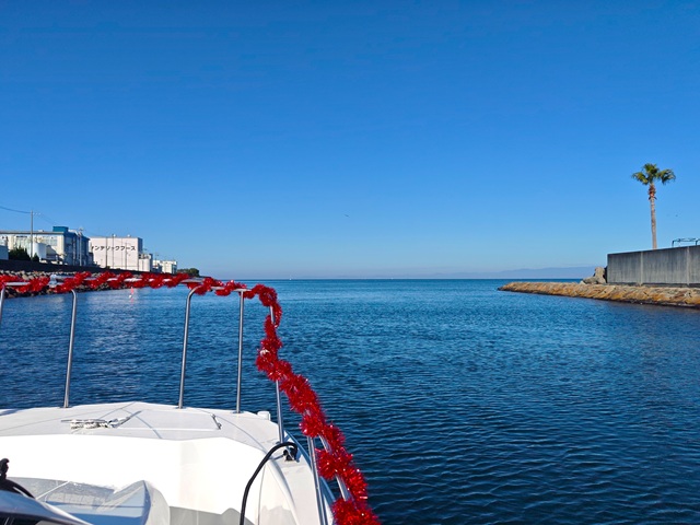 今年の初進水式は、素晴らしい青空の下に、船出です。